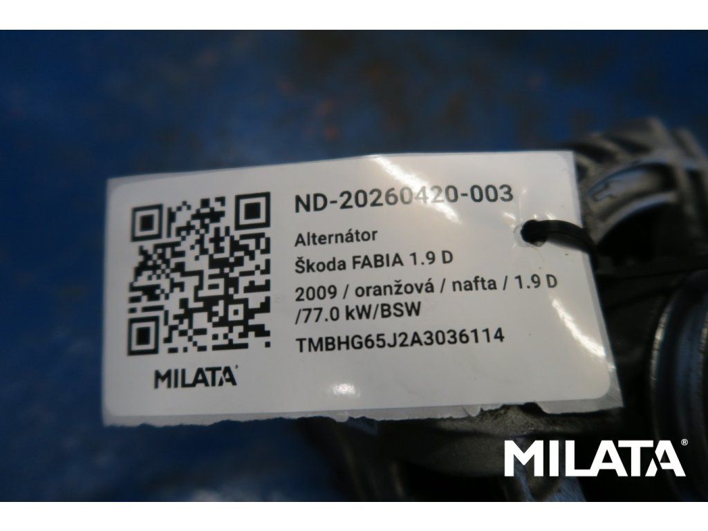 Díl je plně funkční, otestovaný a připravený k montáži. Pochází z vozu po ekologické likvidaci. Představuje cenově výhodné řešení pořízení alternátoru pro váš vůz – se zárukou a možností vrácení.