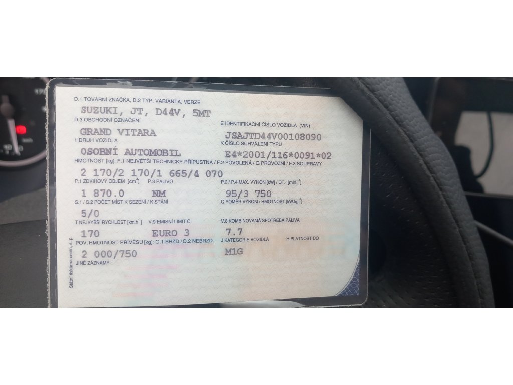 - Na použité díly SUZUKI GRAND VITARA 1.9 D 2006 poskytujeme záruku na funkčnost dle zákona.